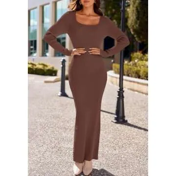 Show more Introducing the perfect blend of style and comfort - this stunning long sleeve knitted dress designed for the modern woman who values elegance and versatility. Crafted from a soft and stretchy ribbed knit fabric, the dress feels luxuriously soft against the skin while ensuring full coverage without any transparency. The sexy square neck design adds a touch of chic sophistication, making it suitable for both casual and formal settings. Whether you're heading to a brunch date or a cozy evening out, this ankle-length bodycon dress is the go-to piece that fits like a glove.