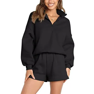 Show more Introducing the MEROKEETY Women's 2024 Fall Oversized Pajamas Lounge Set, a perfect blend of style and comfort designed for every woman who values relaxation without sacrificing chicness. This two-piece outfit features a long-sleeve batwing top paired with matching high-waisted shorts, making it an ideal choice for lounging at home, running errands, or even enjoying a casual day out. With its unique 1/4 zipped neckline, v-neck polo collar, and ribbed cuffs, it seamlessly combines flair with functionality. The soft, sweatshirt-like fabric adds an extra layer of coziness, ensuring you look cute and put together.