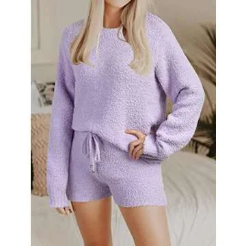 Show more Experience the ultimate in comfort and style with our cozy knit pajama set, designed to be your go-to loungewear! Crafted from soft fabric, this set provides an exceptional wearing experience that you'll love to slip into after a long day. The two-piece design consists of a stylish crewneck top and drawstring waist shorts, perfect for keeping you warm during those chilly fall and winter mornings. You'll appreciate how breathable and skin-friendly the fabric is, ensuring you feel good whether you're lounging around the house or making breakfast for yourself.