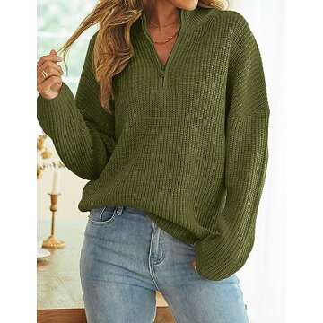 MEROKEETY Women's 2024 Long Sleeve Chunky Knit Sweaters 1/4 Zip Polo V Neck Casual Pullover Tops,ArmyGreen,S