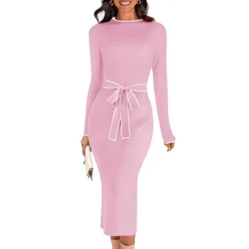Show moreIntroducing the stunning MEROKEETY Women's 2024 Long Sleeve Midi Sweater Dress, a perfect blend of fashion-forward design and unparalleled comfort. This bodycon ribbed knitted sweater dress is crafted from soft and elastic fabric, ensuring it fits beautifully on full figures while also providing ease of movement. The elegant long sleeves and chic mock neck make it an ideal choice for layering during chilly months, seamlessly transitioning from office wear to evening events. With a classy midi length, it exudes sophistication suitable for various occasions.
