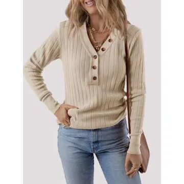 MEROKEETY Women's 2024 Long Sleeve V Neck Ribbed Button Knit Sweater Solid Color Tops