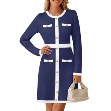 MEROKEETY Women's 2024 Color Block Knit Dress - Navy, S