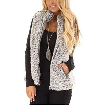 MEROKEETY Women's 2024 Winter Casual Sherpa Fleece Lightweight Fall Warm Zipper Vest Outwear