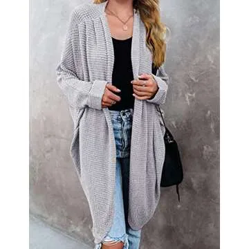 Show moreIntroducing the MEROKEETY Women's 2025 Fall Waffle Knit Batwing Long Sleeve Cardigan, the quintessential addition to your fall wardrobe. Designed with both style and comfort in mind, this cardigan features an oversized boyfriend fit that flatters all body types, while the dolman sleeves with sewn cuffs add a unique touch to your outfit. Made from a lightweight and soft stretch fabric, this cozy chunky waffle knit cardigan is perfect for layering or wearing on its own, making it an effortless choice for any occasion. With its shawl collar and below-hip length, it combines casual elegance with practical functionality.