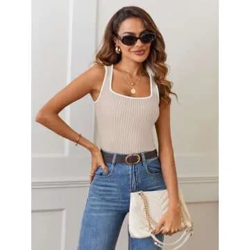 MEROKEETY Women's 2025 Sleeveless Ribbed Tank Tops Summer Square Neck Shirt Casual Slim Fit Basic Knit Tees Almond S