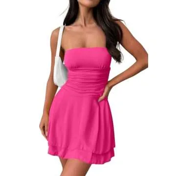 With its charming tube top design, this sleeveless dress flaunts an A-line silhouette enhanced by a high waist and a ruched effect that beautifully flatters your figure. The double-layered tiered ruffle hem adds a fun, flirty touch, ensuring you’re ready for anything from a cocktail party to a night out on the town. It’s above-knee length not only showcases your legs but also provides a dash of chicness that is hard to resist.