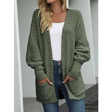 Show more Introducing the MEROKEETY Women's 2025 Winter Fuzzy Popcorn Batwing Sleeve Cardigan Knit Oversized Sherpa Sweater Coat, the ultimate cozy essential for the colder months! This stunning cardigan is designed with a focus on warmth and style, making it the perfect addition to your wardrobe. Made from a soft, skin-friendly fabric, it's not only incredibly warm and cozy but also fashionable enough to elevate any outfit. With its chunky popcorn yarn texture, this cardigan offers a relaxed fit that ensures all-day comfort, whether you’re lounging at home or heading out for a night on the town.