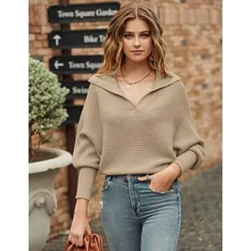Show moreWelcome to your new favorite winter essential: the MEROKEETY Women's Batwing Long Sleeve V Neck Pullover Sweater. This chic knit jumper is designed with both style and comfort in mind, making it the ideal companion for the colder months. Constructed from impeccably soft fabric, this sweater ensures a cozy experience for your skin while its unique features include batwing long sleeves and a stylish lapel v-neck. You’ll love the oversized fit which complements all body shapes, while the ribbed knit cuffs add a touch of sophistication to every outfit. Embrace this perfect blend of fashion and warmth with a variety of colors to express your unique style.
