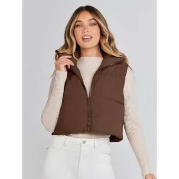 MEROKEETY Women's Casual Sleeveless Puffer Jacket Vest Stand Collar Padded Gilet Coat with Zipper,Coffee,S