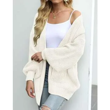 MEROKEETY Women's Fall Open Front Long Lantern Sleeve Cardigan Oversized Chunky Outwear with Pocket Beige