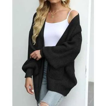 MEROKEETY Women's Fall Open Front Long Lantern Sleeve Cardigan Oversized Chunky Outwear with Pocket Black