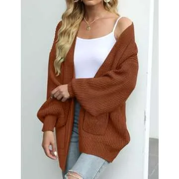 MEROKEETY Women's Fall Open Front Long Lantern Sleeve Cardigan Oversized Chunky Outwear with Pocket Caramel