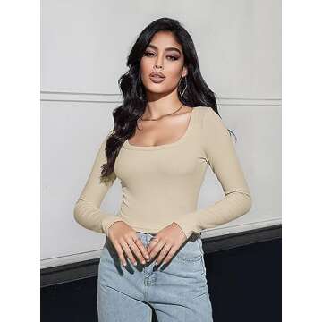 Show more Step into the season with this effortlessly stylish Y2K Ribbed Knit Crop Top, designed to elevate your wardrobe for the autumn and winter months. This chic top is made from a lightweight, stretchy, and skin-friendly ribbed knit fabric, ensuring maximum comfort while maintaining a flattering silhouette. Featuring a trendy square neckline and a slim fit, this top highlights your curves and makes a statement in any casual or dressy setting.