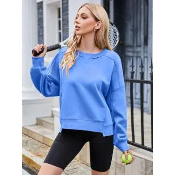 MEROKEETY Women's Oversized Cropped Sweatshirts Crewneck Fleece Workout Pullover Sweater Fall Outfits, Blue, M