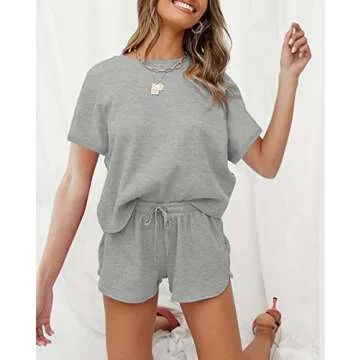 Show moreIntroducing the MEROKEETY Women's Short Sleeve Waffle Pajama Sets Lounge Top and Shorts 2 Piece Tracksuit Outfits—the ultimate fusion of comfort and style! Made to be your go-to ensemble for lazy Sundays at home or spontaneous outings, this set features a vibrant grey color that adds a cheerful pop to your wardrobe. The unique waffle-knit texture delivers breathability and softness, ensuring maximum comfort throughout the day. With its relaxed fit and thoughtfully designed pieces, you can enjoy an effortlessly chic look while feeling completely at ease.