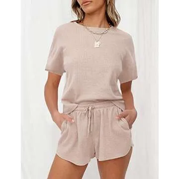 MEROKEETY Women's Short Sleeve Waffle Pajama Sets Lounge Top and Shorts 2 Piece Tracksuit Outfits, ShortBeige, S