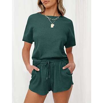 MEROKEETY Women's Short Sleeve Waffle Pajama Sets Lounge Top and Shorts 2 Piece Tracksuit Outfits