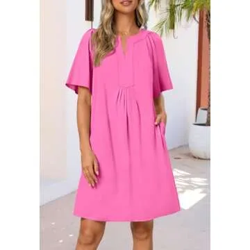 MEROKEETY Women's Summer Casual Shift Dresses Beach Vacation Short Sleeve V Neck Spring Mini Dress, Rose, Large