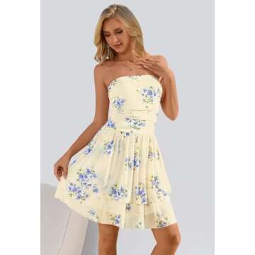 MEROKEETY Women's Summer Floral Strapless Tube Dress Boho Off Shoulder Ruffle Tiered Mini Sundress, Apricot, X-Large