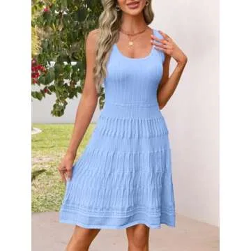 Show moreStep into summer with the elegant MEROKEETY Women's Summer Sleeveless Mini Dress. Crafted from a soft and elastic fabric, this dress promises a breathable and lightweight wearing experience, making it perfect for those warm sunny days. The round neckline and sleeveless design create a classic silhouette while adding comfort and versatility. With its flowy A-line shape and slim fit, this dress flatters every body type, complemented beautifully by a unique hollow crochet design at the waist and hem. The ribbed knit texture offers an additional layer of visual interest, ensuring you stand out effortlessly.