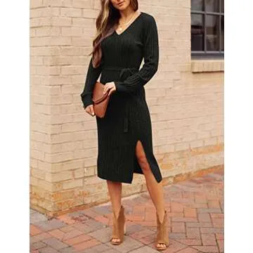 The MEROKEETY Women's V Neck Cable Knit Sweater Dress isn’t just clothing; it’s an experience. This dress makes you feel confident and empowered irrespective of the occasion. It enhances your natural allure with its flattering design while keeping you cozy and chic. Perfect for layering on those brisk days or standing out at gatherings, you’ll love how it fits into every aspect of your life. With this versatile piece in your wardrobe, you’re not just dressing up; you’re expressing a style that is uniquely yours.