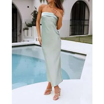 MEROKEETY Women Strapless Satin Tube Bodycon Dress Backless Cutout Cocktail Party Maxi Dress Sage Medium