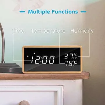 Show moreExperience the perfect blend of style and functionality with the meross Digital Alarm Clock. Designed with a sleek real wood finish, this clock not only enhances your bedroom decor but also integrates advanced features that cater to your daily needs. The LED display provides clear visibility of the time, temperature, and humidity, making it an ideal companion for your sleep environment. With the ability to set up to three different alarms, you can easily customize your wake-up routine to fit your lifestyle. Plus, the adjustable brightness allows you to choose the perfect level of illumination that suits your comfort, whether it’s day or night.