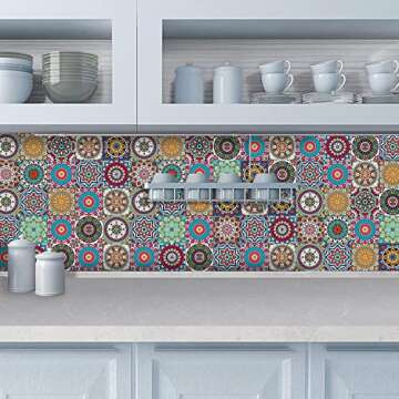 Merouk Peel and Stick Tile Stickers - 25 Pcs Colorful Vinyl Decals 4x4 Inch