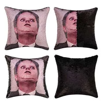 Merrycolor The Office Throw Pillow Cover Dwight Schrute Mask Sequin Pillowcase Mermaid Decorative Cushion Cover Funny Gag Gifts 16 X 16 Inch