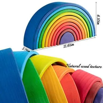 Show moreIntroducing the MERRYHEART Wooden Rainbow Stacking Toy, a delightful addition to any child’s playtime. This beautifully crafted toy consists of 10 large pieces made from 100% natural solid wood, designed to inspire creativity and imaginative play. Each arch is expertly dyed with non-toxic, water-based pigments, allowing children to experience vibrant colors while stacking, building, and creating endless structures. With a size of 11.8 inches long, 2.75 inches wide, and 6.1 inches high, this educational toy is perfect for toddlers aged 36 months and up. The rainbow stacker not only looks appealing on any shelf but also serves as a fantastic tool for developing essential skills in young children.