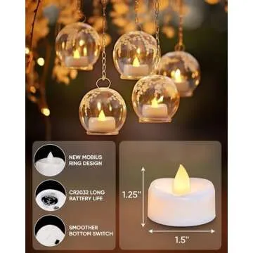 merrynights LED Candles, 24-Pack Tea Lights Candles Battery Operated Bulk, Long-Lasting 200 Hours Flameless Tealight Candles, Flickering Tea Lights for Halloween Fall, Warm Yellow, 1.5'' D X 1.25'' H