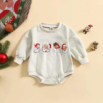 MERSARIPHY Baby Christmas Clothes Baby Boy Girl Sweatshirt Romper Santa Baby Romper Tops Fall Winter Outfits (White Four Santa, 0-3 Months)