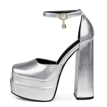 Show moreElevate your party look with the MERUMOTE Women's Sexy High Heels, designed to make you stand out. These stunning silver pumps feature a luxurious PU material adorned with dazzling rhinestones, ensuring you shine at any event. With a heel height of approximately 15cm/5.9-inches and a platform of 6cm/2.36-inches, these shoes strike the perfect balance between sexy and stable. The double-layer platforms and chunky block heels provide unparalleled stability, making them the ideal choice for dancing the night away. The ankle buckle design ensures a snug fit, while the shiny diamonds add a touch of glamour. Versatile enough to pair with stockings, dresses, jeans, or pants, these heels are perfect for daily wear, dating, shopping, or parties. Plus, with convenient logistics for exchange and return, and a variety of colors to choose from, finding your perfect fit has never been easier.