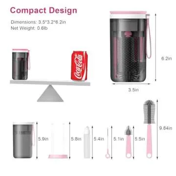 MeryStar Travel Bottle Cleaner Kit, Baby Bottle Brush Set with Silicone, Bottle Cleaner Brush and Drying Rack for Travel and Family Visits, Gift for New Moms (Pink)