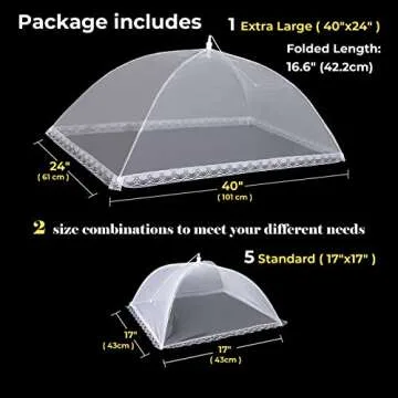 Mesh Food Covers for Outdoors,1 Pack 40"X24" Extra Large Food Net + 5 Pack 17"X17 Large Pop Up Mesh Food Tent Umbrella Food Covers for Outside Picnic Party BBQ Supplies