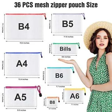 Mesh Zipper Pouch Bags, 36Pcs Zipper Pouches for Organizing, 8 Size 8 Color Waterproof Plastic Zipper Bag for Office School Supplies Game File Storage