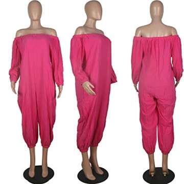 Show moreThe perfect addition to any fashionable woman's wardrobe, this stunning jumpsuit is designed with versatility and style in mind. Made from lightweight polyester, it offers a comfortable and chic fit that is perfect for various occasions. You'll love the elastic off-shoulder feature that brings out the feminine charm, while the beam foot design and wide leg pants give it a trendy touch. With spacious pockets for convenience, this jumpsuit is not just aesthetically pleasing but also practical for the on-the-go woman.