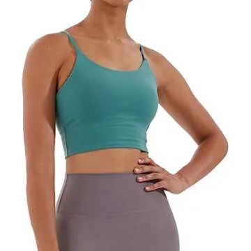 Meslong Women's Strappy Stretch Sports Bra Longline Yoga Tank Top Fitness Bra Workout Camisole Crop Tops for Teen Girl(Bean Green,Medium)