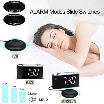 Mesqool Loud Alarm Clock for Heavy Sleepers and The Hearing Impaired - with Bed Shaker, 2 USB Chargers, 7-Color Nightlight, Large LED Display, Dimmer, Snooze, 12/24H DST and Plug-in Battery Backup