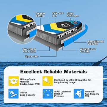 Show moreIntroducing the Mesuvida Inflatable Stand Up Paddle Board, a perfect blend of quality and performance designed to elevate your water sports experience. Constructed from military-grade double-layer PVC and featuring a high-density drop-stitch design, this paddle board offers enhanced collision resistance and cushioning. The anti-slip EVA surface ensures excellent grip, providing confidence and comfort whether you’re paddling, fishing, or doing yoga on the water. Plus, the handcrafted details minimize bubbles and improve durability, providing a smooth ride you can rely on.
