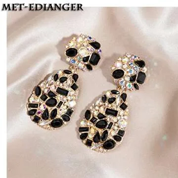 Met-edianger Black Rhinestone Statement Earrings for Stunning Formal Style