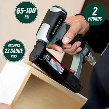 Metabo HPT Pin Nailer Kit Pro Preferred Brand of Pneumatic Nailers 23 Gauge Accept 5/8-Inch to 1-3/8-Inch Pin Nails Ideal for Cabinets Paneling Craft Work & Picture Frame Assembly NP35A