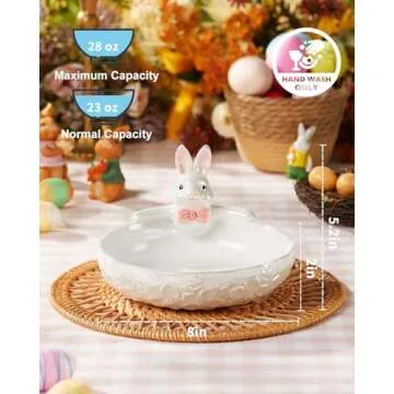 Its playful bunny design, complete with embossed floral patterns, not only elevates your seasonal décor but also invites smiles and joy at every gathering. Crafted with premium ceramic, the bowl is durable yet delicate, requiring hand washing to maintain its dazzling appearance. This bowl is not suitable for microwave use, highlighting its focus on elegance over utility.