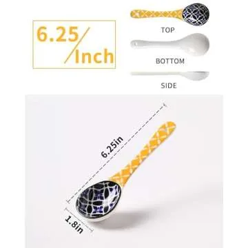 Metahom Colorful Ceramic Small Serving Spoons Set - Perfect for Soups and Cereal, Dishwasher Safe, Set of 6