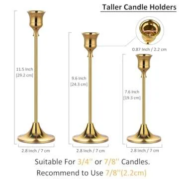 Metal Candle Holders for Candlesticks Taper Candlestick Holders Set Vintage Decorative Centerpiece Candelabra Tall Candle Stands for Halloween Thanksgiving Christmas (Gold, 2 Sets (6 pcs))