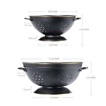 Show more Introducing the **Metal Colander Set of 2** by BeFare, designed to elevate your kitchen experience with its blend of functionality and style. This versatile colander set includes two sizes: a 3-Quart for everyday meals and a generous 5-Quart option that’s perfect for entertaining guests or preparing large batches of your favorite dishes. Crafted from high-quality, durable metal with a food-safe powder coating finish, these colanders resist rust and wear over time, ensuring you enjoy countless cooking adventures without compromising on quality.