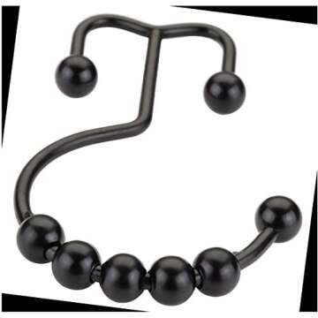 Show moreIntroducing the Metal Double Glide Shower Hooks Rings, the perfect blend of functionality and style for your bathroom. Crafted from high-quality rust-resistant stainless steel, these shower curtain rings are designed for enduring use, even in harsh environments. With a sleek matte black finish, these hooks add a touch of elegance to any bathroom decor, transforming your space into a sanctuary of relaxation and comfort. Our innovative free gliding action ensures that the rings slide effortlessly over any standard straight or curved shower curtain rod, minimizing friction and enhancing your shower experience.