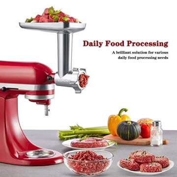 Show more The Cofun Meat Grinder Attachment for KitchenAid Stand Mixer is a remarkable addition that transforms your culinary experience. Designed for those who are passionate about cooking, this premium-quality attachment boasts a robust construction of high-grade aluminum alloy, ensuring longevity and durability far superior to plastic alternatives. No longer will you need to wrestle with manual meat grinders—this efficient attachment empowers you to create your favorite ground meats effortlessly and healthily.