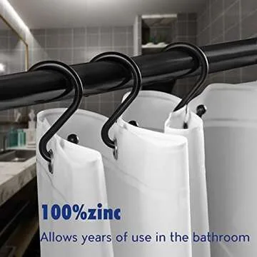 Premium Metal Shower Curtain Hooks - Set of 12 Rust-Resistant S-Shaped Hangers for Multi-Use (Black)
